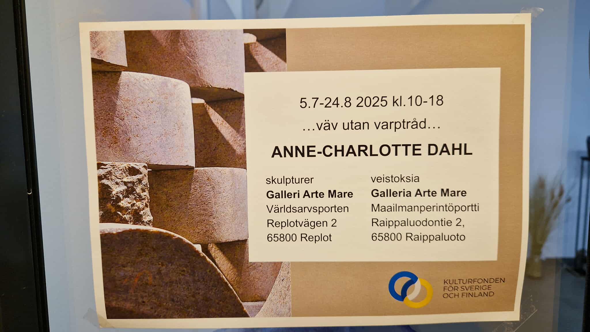Anne-Charlotte Dahlins utställning Skulpturer visas på galleriet Arte Mare vid Världsarvsporten 5.7–24.8.2025. Info har besökt utställningen och genom bilderna nedan kan även ni bekanta er med innehållet på utställningen. Vi rekommenderar naturligtvis att uppleva skulpturerna på plats – utställningen är öppen varje dag kl. 10–18 på adressen Världsarvsporten, Replotvägen 2, 65800 Replot.