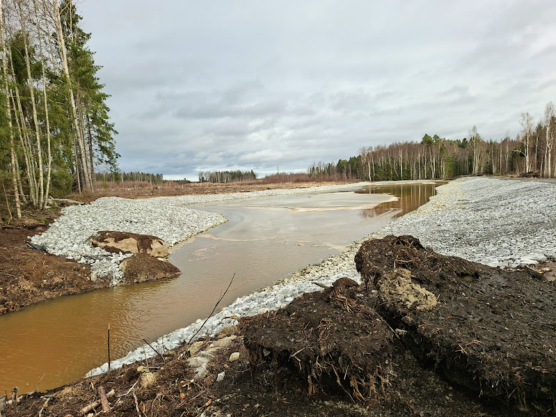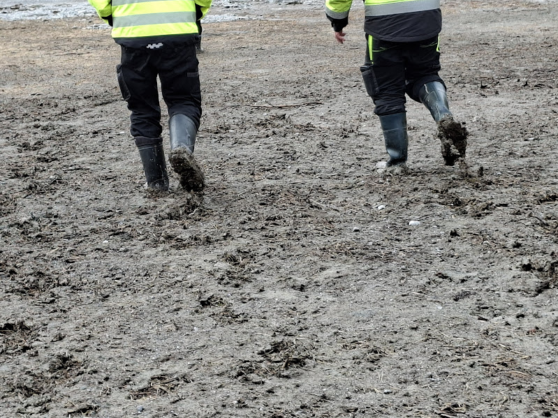 Byggandet av teknisk infrastruktur i Gigaområdet har varit ett långt projekt men nu är arbetena slutförda. I det sista skedet byggdes två jättestora fördröjningsbassänger för dagvatten. Vintern var kort och mild men man lyckades ändå med att få alla tunga maskiner till arbetsplatsen och utföra det man skulle. Då arbetet togs emot var marken redan mycket mjuk och lerig.
