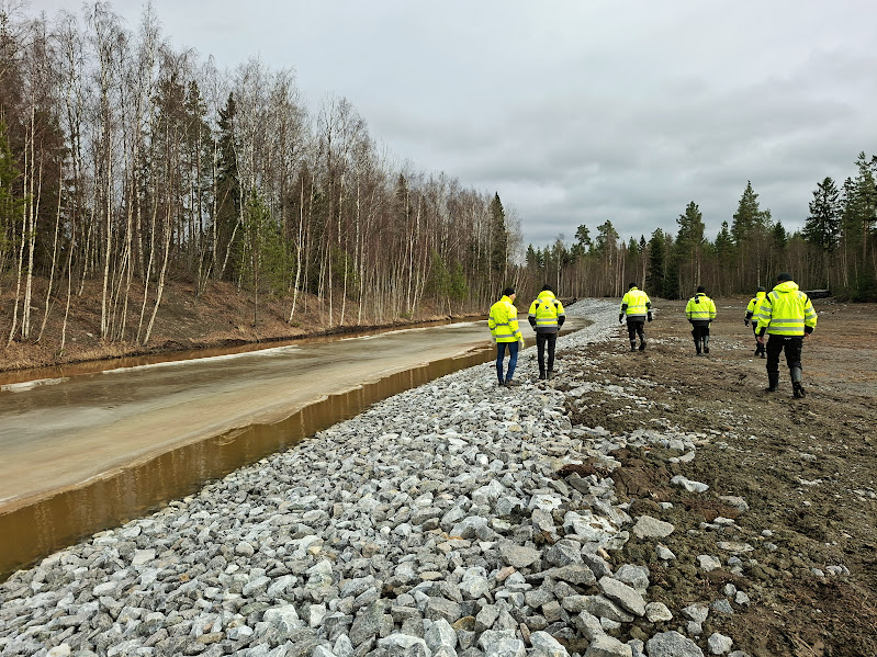 Giga-alueen teknisen infran rakentaminen on ollut pitkä projekti, ja nyt työt on saatu päätökseen. Viimeisessä vaiheessa rakennettiin hulevesille kaksi valtavan suurta viivytysallasta. Talvi oli lyhyt ja leuto, mutta kaikki raskaat työkoneet onnistuttiin saamaan paikalle ja suorittamaan tarvittavat työt. Kun urakka otettiin vastaan, maa oli jo hyvin pehmeä ja savinen.