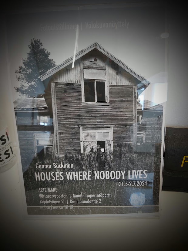 Gunnar Bäckman on pystyttänyt valokuvanäyttelynsä Houses Where Nobody Lives Arte Mareen. Bäckman on kiinnostunut vanhoista taloista ja on valokuvaajana käynyt monissa sellaisissa. Autiot talot kertovat tarinoitaan, ja Bäckman kertoo näyttelynsä kuvissa omia tarinoitaan. Jos oikein tarkkaan katsoo, saattaa talojen ikkunoissa näkyä ihmiskasvot, ja muutamassa kuvasarjassa on myös omat tarinansa katoavaisuudesta. Kuvissa ovat mukana Patricia Rodas, Ida Rodas, Miranda Klockars ja ukrainalainen taiteilija Lesia Diak. Näyttelytyöt ovat uusia valokuvia vanhalla tekniikalla ja ne ovat esillä 2.7.2024 saakka.