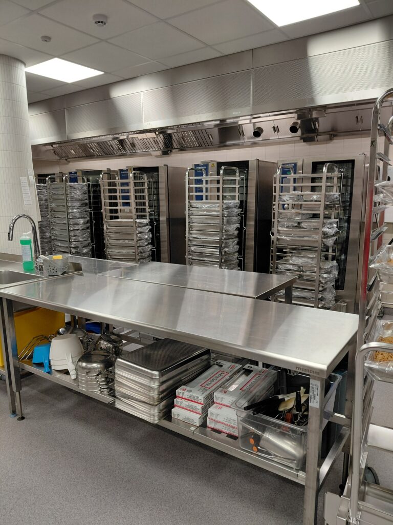 Tilat ovat valoisat ja raikkaat, ja väripaletti on maanläheinen. Ruokapalvelupäällikkö Marcus Åkerblom opasti vierailijoita tilavassa ruokasalissa ja esitteli, miten ruoan tarjoilu toimii. Koska ruokailu koskee yli 1500 henkilöä kolmessa vuorossa, kaiken pitää olla hyvin suunniteltu etukäteen. Uudessa ruokasalissa ei käytetä tarjottimia, ja lautaset ovat yleislautasia, eikä siellä ole erikseen matalia ja syviä lautasia.
