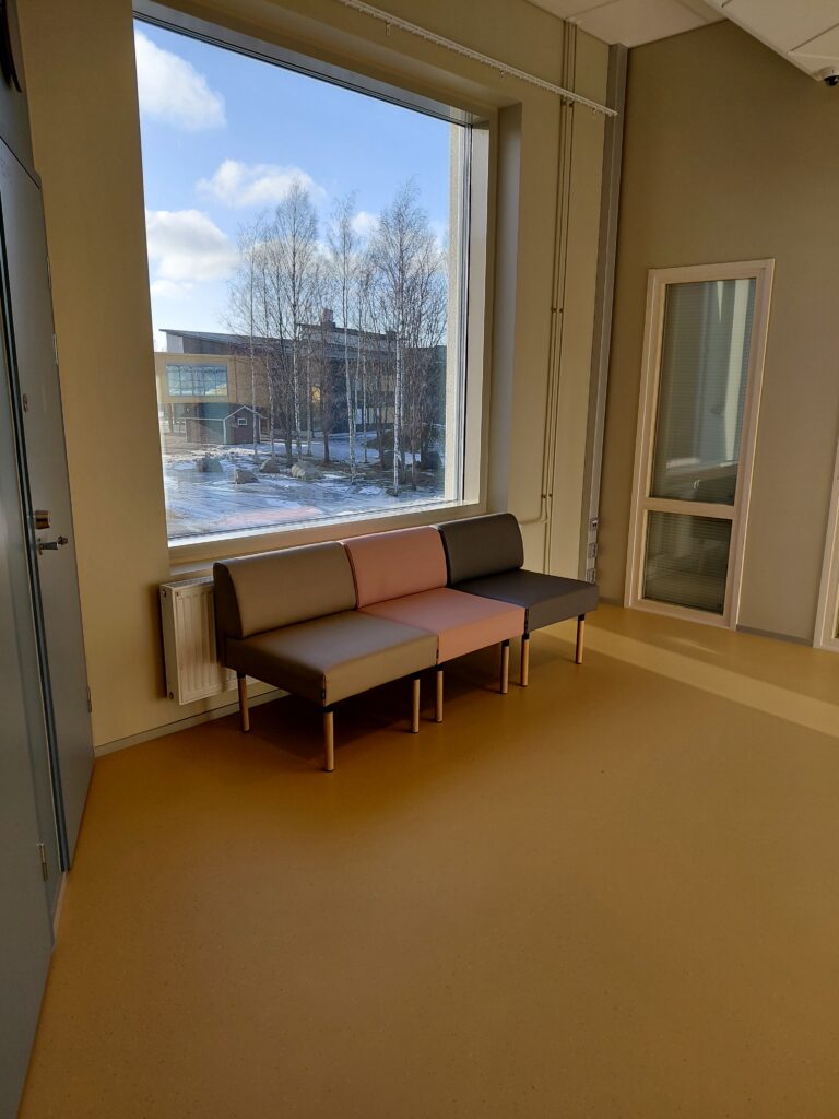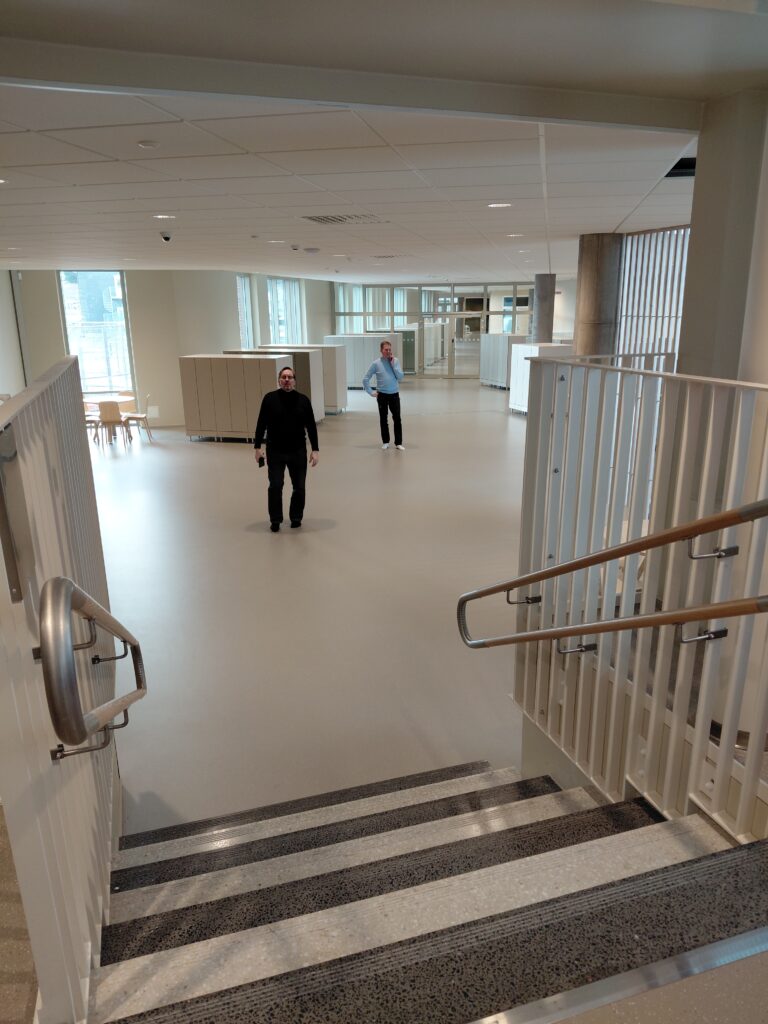 Eleverna i Korsholms högstadium flyttade in i campusets splitternya utrymmen i E-delen efter sportlovet. Info fick följa med samhällsbyggnadsutskottet och bekanta sig med de nya skolutrymmena efter skoldagen.