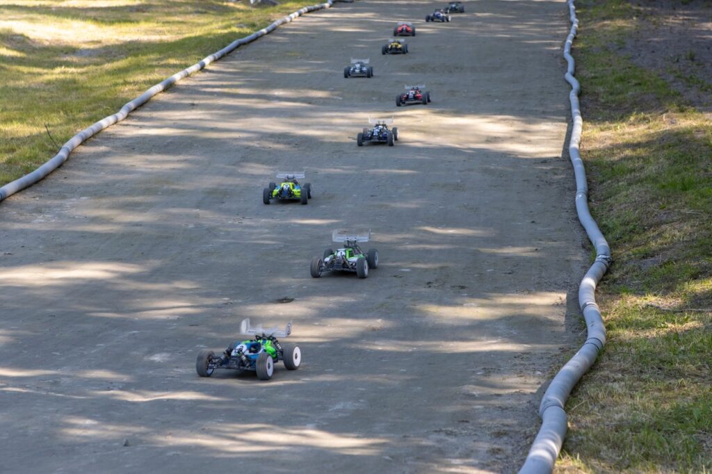 Sähkökrossarien finaalilähtö Vaasan Pitkämäen radalla. – Finalstart i elcrossklassen på banan i Långbacken i Vasa. Foto: Keijo Ullakko.