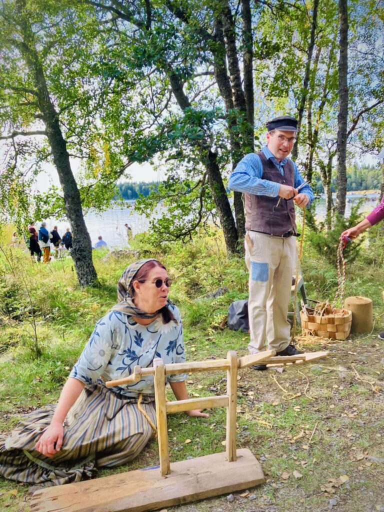Granösundin museolla Heidi Jahkola ja Daniel Beijar opastivat köydenpudonnan saloihin. – På Granösunds fiskeläge visade Heidi Jahkola och Daniel Beijar visade hur man slår rep. Foto: Annica Reini
