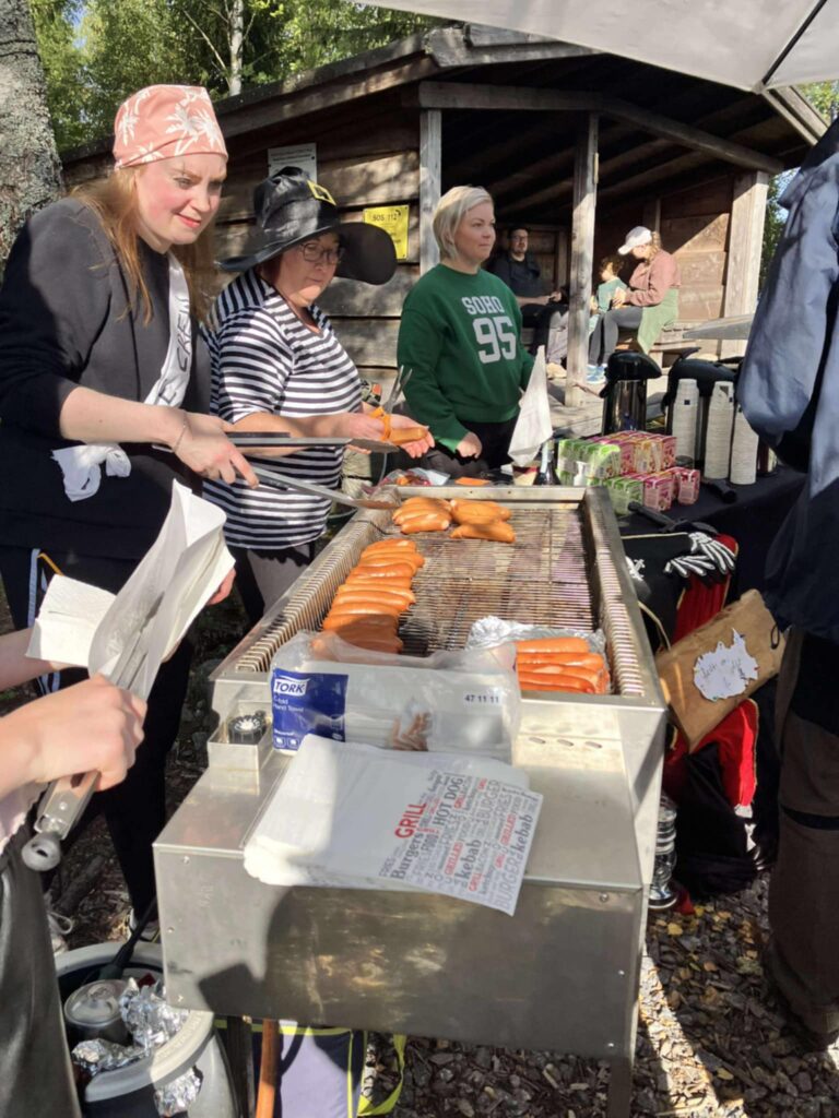 Nuotiolla kärysivät savu ja makkara, sillä nuorisoseura oli paikalla myymässä nälkäisille merirosvoseikkailijoille pientä purtavaa. Vallgrundin asemalta tulleet merivartijat olivat laiturissa parkissa vartioimassa merirosvojen puuhia, ja heidän suureen alukseensa saivat myös kävijät tutustua.