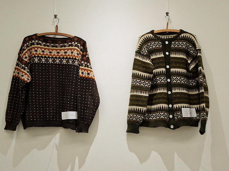 Retrovillapaitoja Aikuisopiston näyttelyssä – Retrotröjor i utsällningen på Vuxeninstitutet