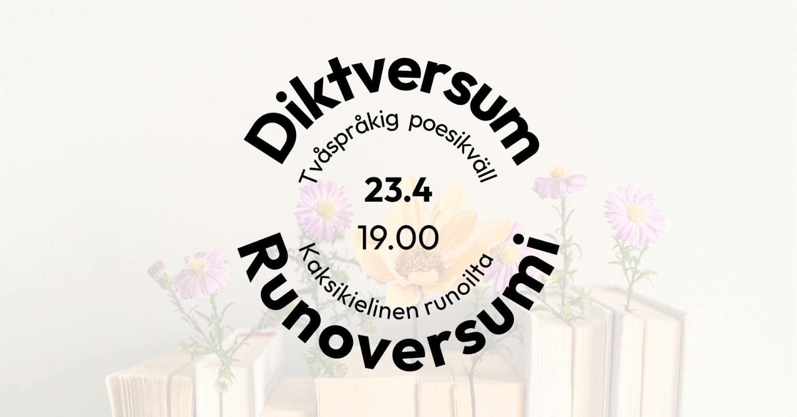 Torstaina 23 huhtikuuta on kaikilla kielillä kirjan päivä. Mikä silloin sopisi paremmin kuin kuunnella eläviä runoilijoita lukemassa ääneen runojaan? Infon runoversumirunoilijat Maarit Koivisto, Henry Koivisto, Tony Swanljung ja Jane Trygg-Kaipiainen kohtaavat toisia eläviä runoilijoita, nimittäin Sandra Lehdon ja Jens Sandbergin klo 19 Aikuisopistom Alice-ryhmähuoneessa. Kirjan ja runouden kunniaksi tarjoillaan myös vähän musiikkia. Tilaisuus on kaksikielinen.