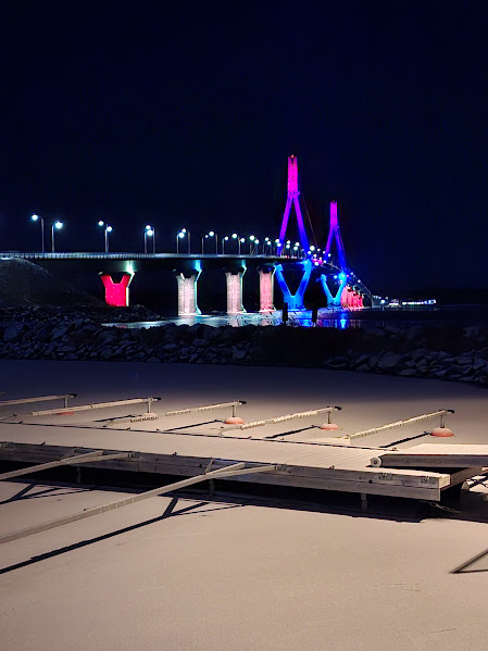 Korsholms kommun bjöd på en sagolik ljusshow på Replotbron på nyårsafton klockan 18, 20, 22 och vid midnatt.