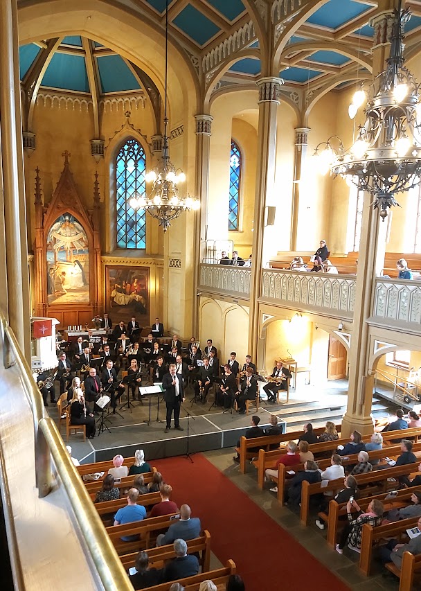 På söndagen den 5 juni ordnade Vasa finska församling i sin kvällsmusikserie en marchmusikkonsert med det nya brassbandet Ostrobothnia Symphonic Wind Band. Konserten uppfördes både i Seinäjoki och i Vasa på samma vecka som försvaret firade sin fanfest och konserten var även till stöd för Ukraina. Kapellmästaren Jimi Järvinen ledde sitt band med säkert grepp och presenterade alla stycken och upplyste samtidigt publiken om marschmusik i allmänhet. Vi fick veta att militärmusiken har många hundra år av tradition och samma tradition förs vidare även i dag och har förädlats vidare till marscher, fanfarer och drummarscher.